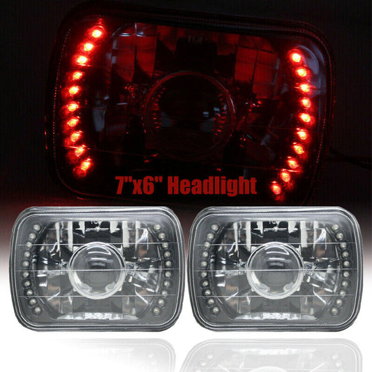 7"x6" H6014 H6052 H6054 Sealed Beam RED LED Black Housing Clear Headlights Lamp