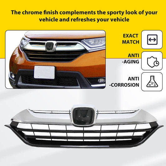 Bumper Upper Grille w/Chrome Trim Fits 2017 2018 2019 Honda CRV CR-V Front Grill