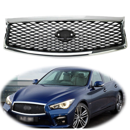 Chrome Upper Grille Trim For 2014-2017 Infiniti Q50 JDM Front Honeycomb Grill