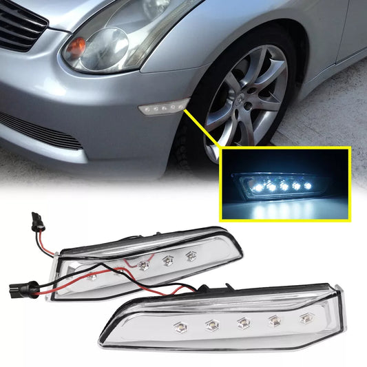 White LED Bumper Side Marker Lights Clear Lens For 2003-2007 Infiniti G35 Coupe