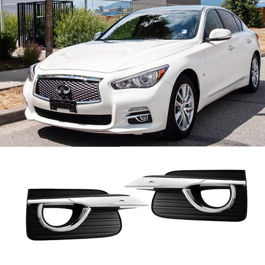 Fits 2014-2017 Infiniti Q50 Front bumper Fog light Lamp Covers Frame Bezel Pair