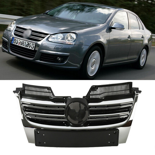 Fits 2005-2010 VW Jetta MK5 Sedan Black Front Upper Grille Grill W/Chrome trim
