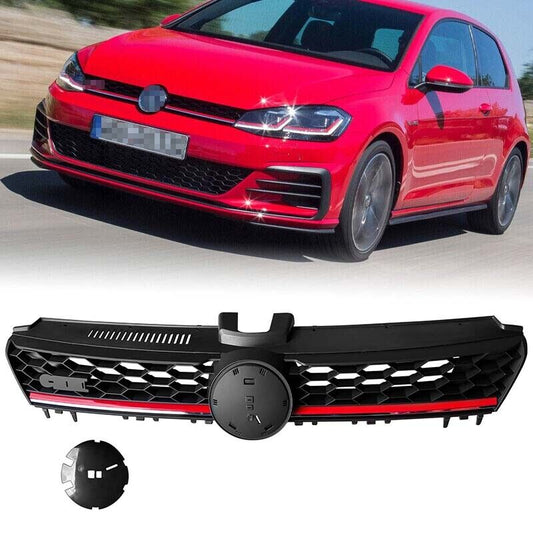 Fit 2015 2016 Volkswagen VW MK7 Golf/GTI Bumper Upper Black w/Red Trim Grille